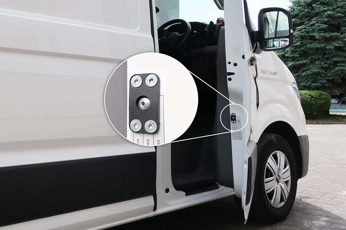 Funguje tak, že dodatečně uzamyká zadní a boční dveře dodávky.