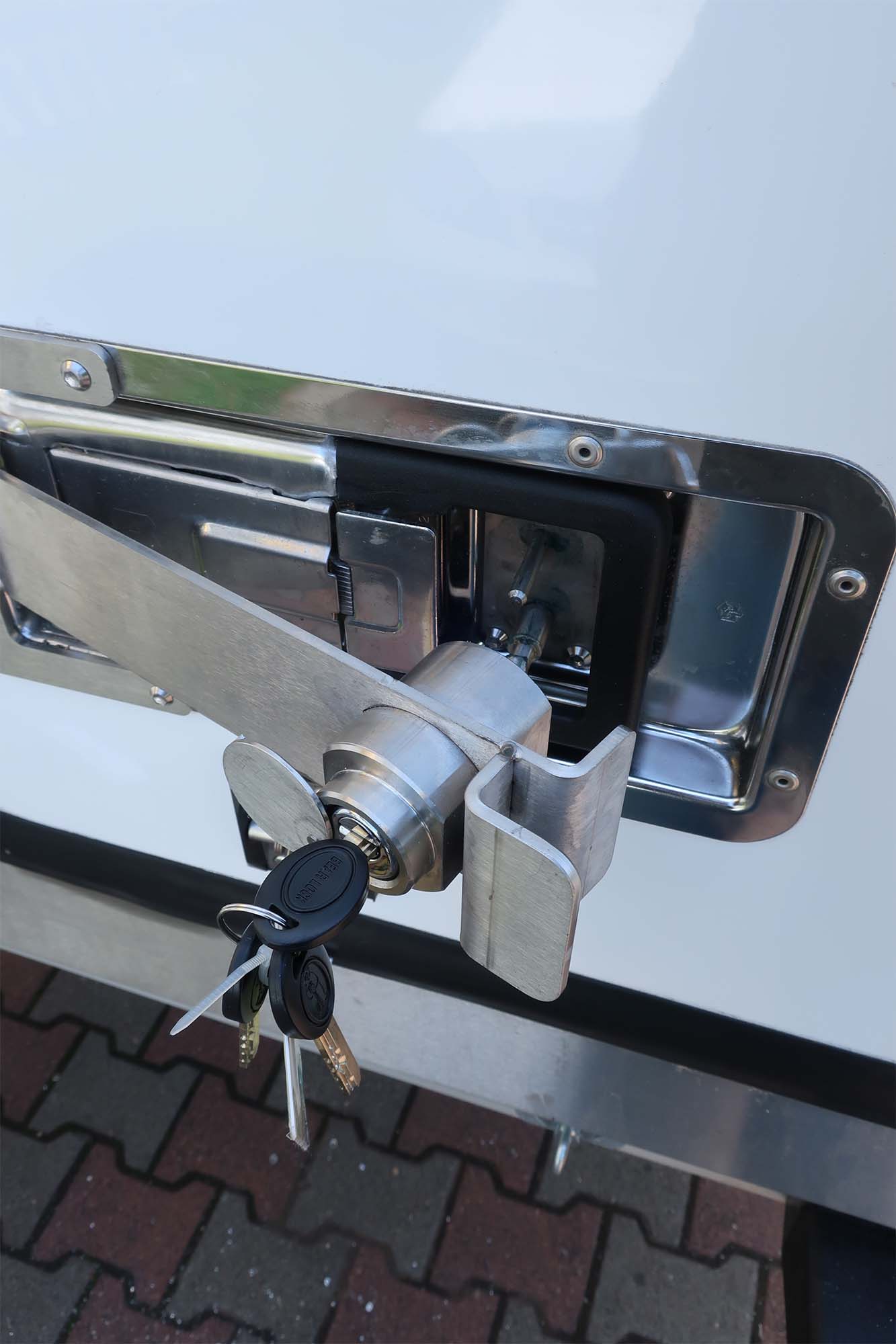 Použité zámky jsou odolné proti vystružení. Uzávěry jsou vyráběny pro konkrétní kliku a její geometrii, takže si můžeme být jisti, že budou 100% splňovat požadavky.