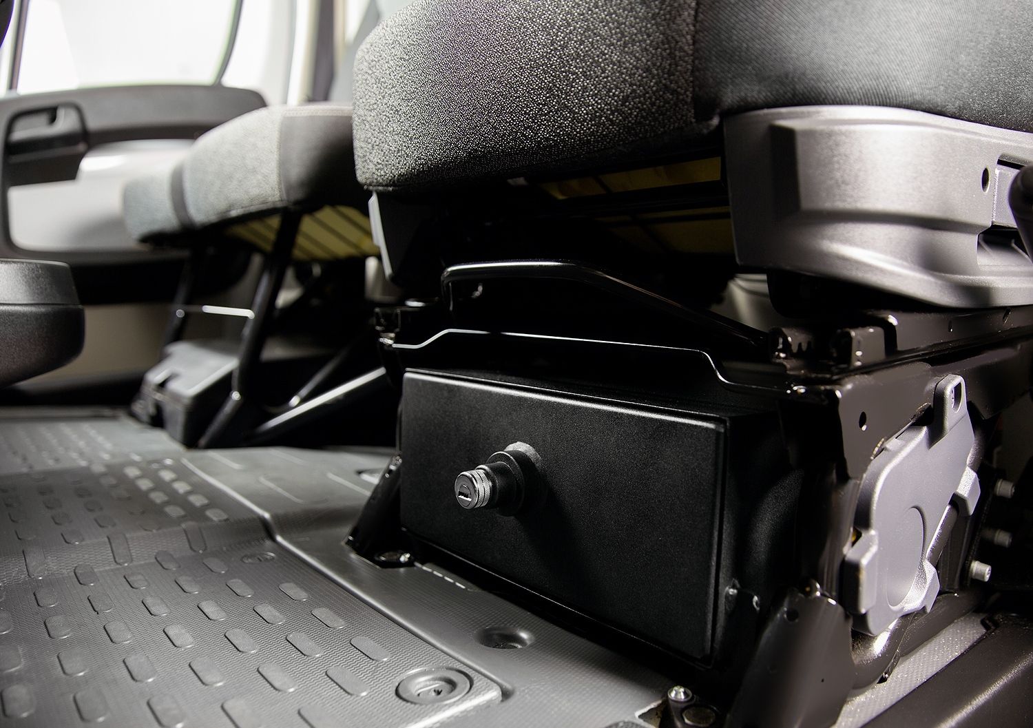 Instaluje se v dodávkách pod sedadlo. Montáž nevyžaduje žádný zásah do vozu, protože se používají otvory z výroby. Disponuje bezpečnostními prvky, které se používají u jiných vozů Mister-Lock.