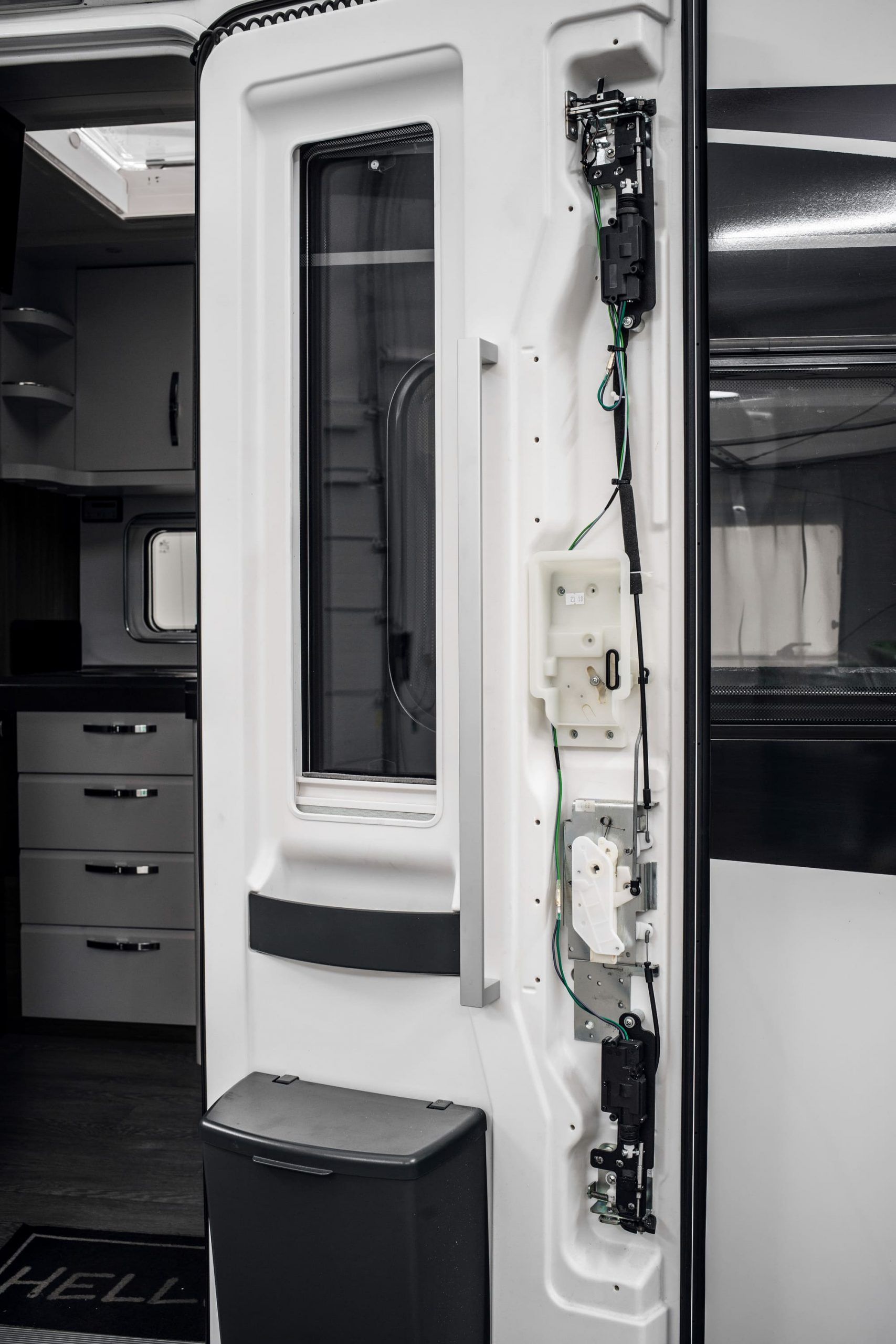 Zamykací prvky jsou umístěny uvnitř dveří a z pohledu uživatele jsou prakticky neviditelné, takže systém je při každodenním používání velmi diskrétní a nenápadný.
